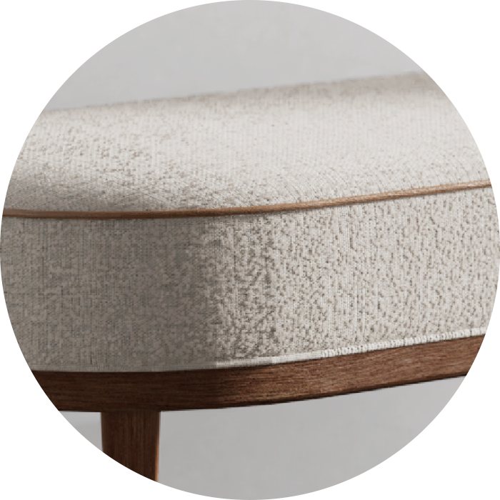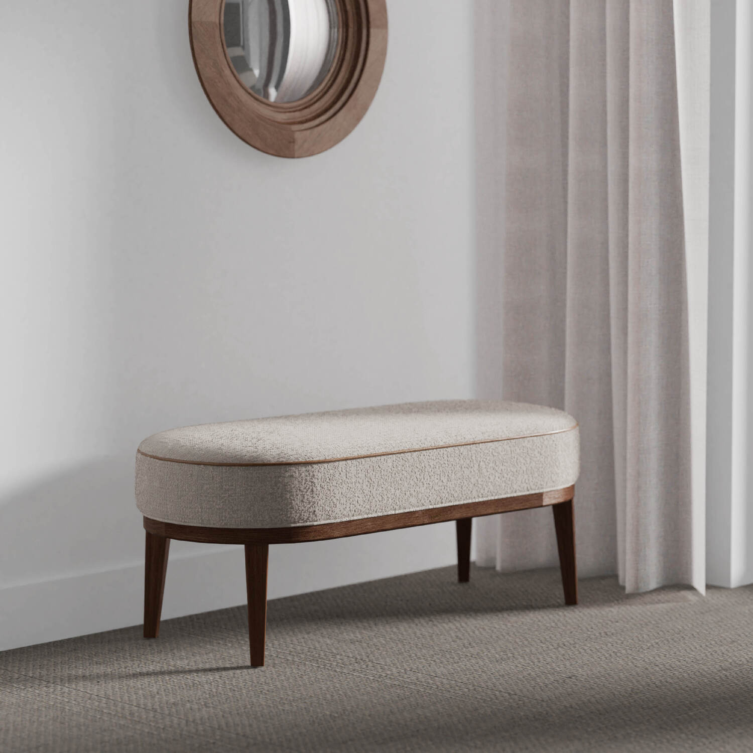 Банкетка Luna сочетает в себе премиальный комфорт сиденья и лаконичный, но в то же время роскошный дизайн, очаровывает округлыми формами и интеллигентным основанием из массива.