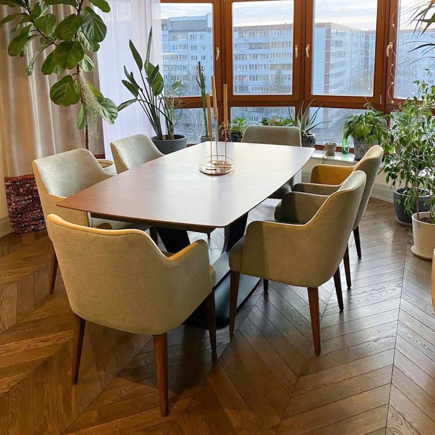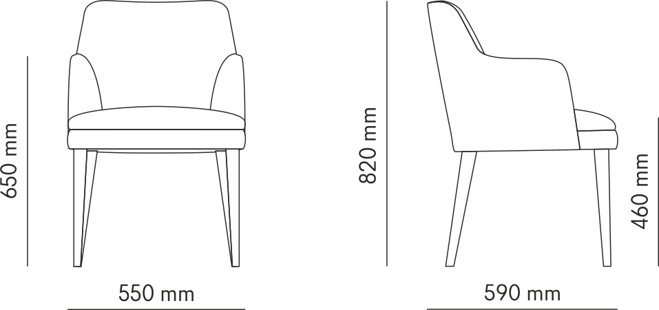 Упругое сиденье и эргономичная выпуклость в районе поясницы в мягком слое спинки отвечают за непревзойденный комфорт. В силуэте общей канвой проходят сглаженные углы, которые находят свое продолжение в скругленных внешних гранях ножек.