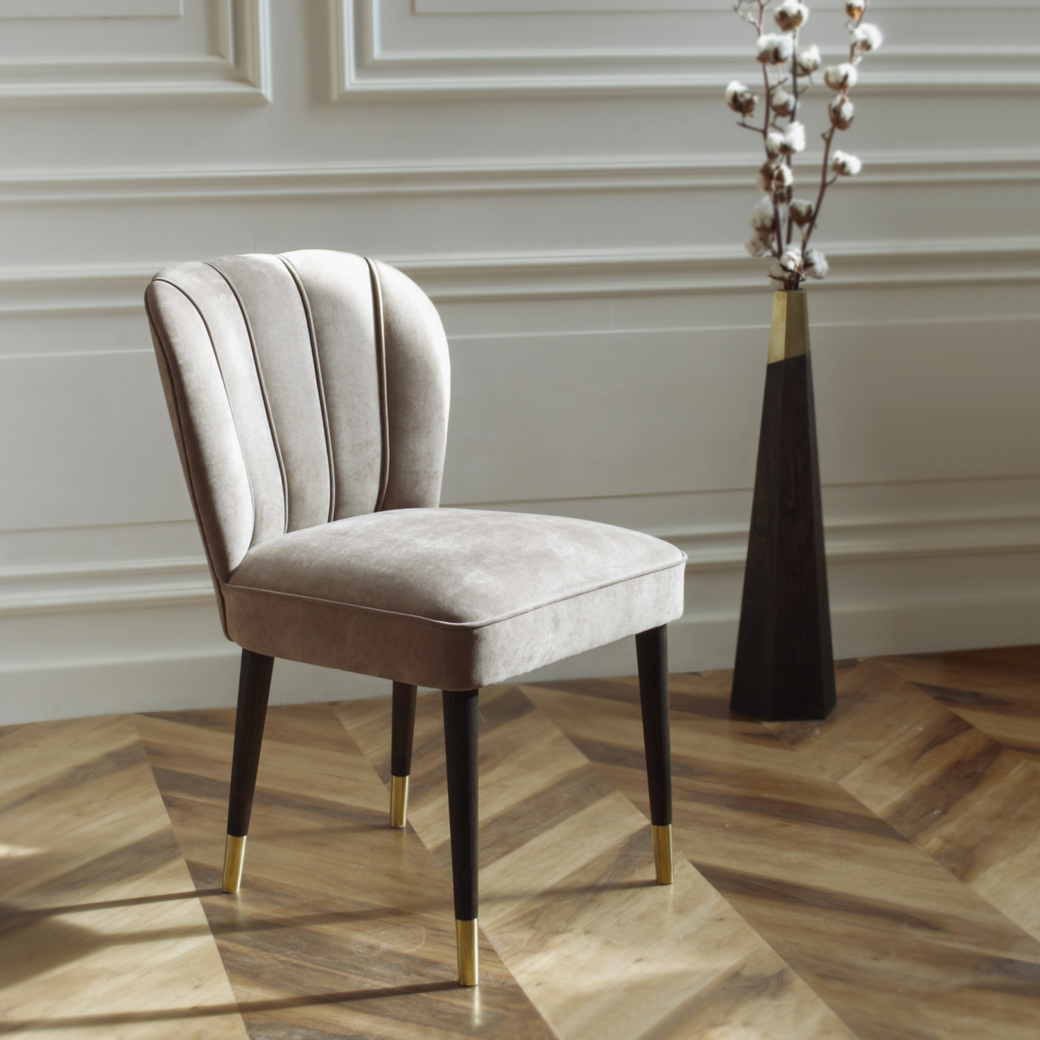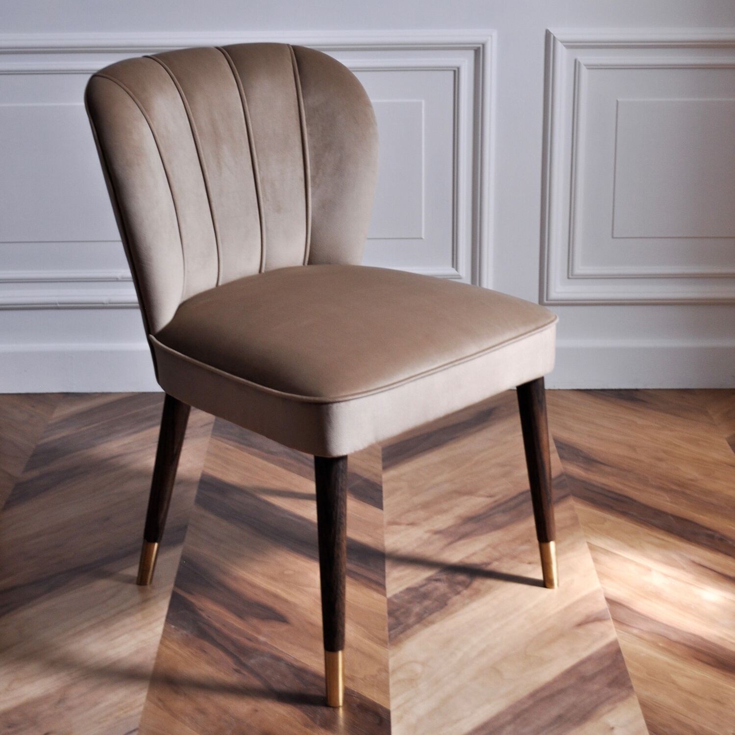 Стул Bruni выделяется спинкой в форме раковины морского гребешка, упругое сиденье и эргономичный наклон спинки отвечают за непревзойденный комфорт. Конические опоры завершают роскошный образ, пронизанный эстетикой 60-х годов.